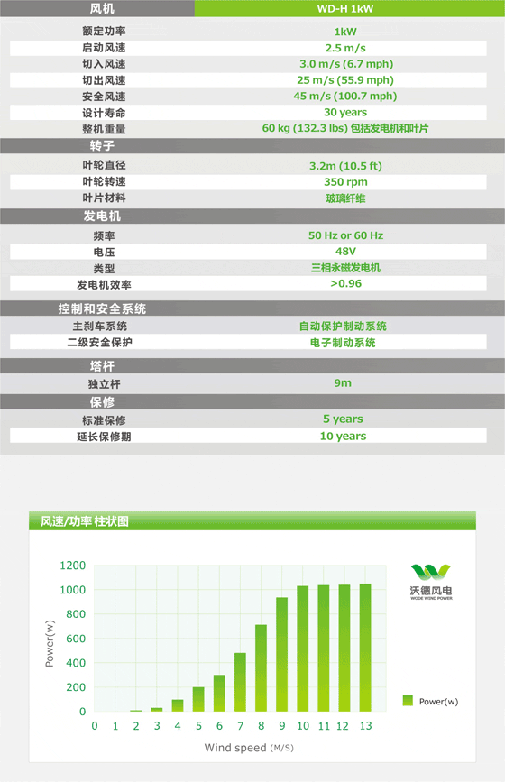 1kW风力发电机具有以下特点: